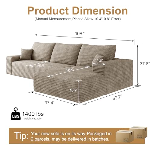 Plush Corduroy Fabric:Feel the difference with our plush corduroy fabric, as soft as a hug from your favorite blanket. The rich texture and subtle sheen of this cloud couch elevate your living space, offering a tactile experience that pampers you. Cozy up and embrace the warmth and softness all year long with our modular sectional sofa.