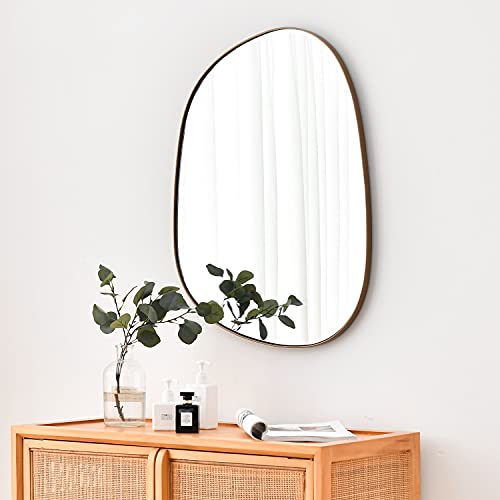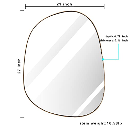 Asymmetrical Mirror for Wall Decor 21″*27″, Modern Brass Framed Wall Mirror for Living Room Bathroom Bedroom Entryway ELE-STOU-0065G