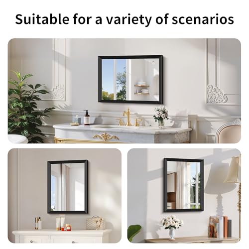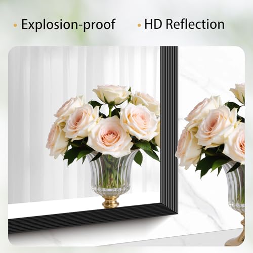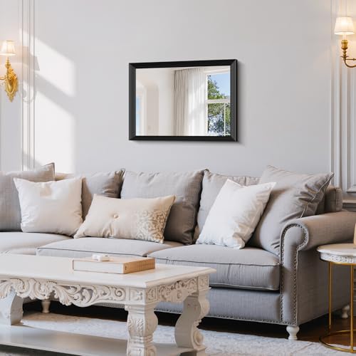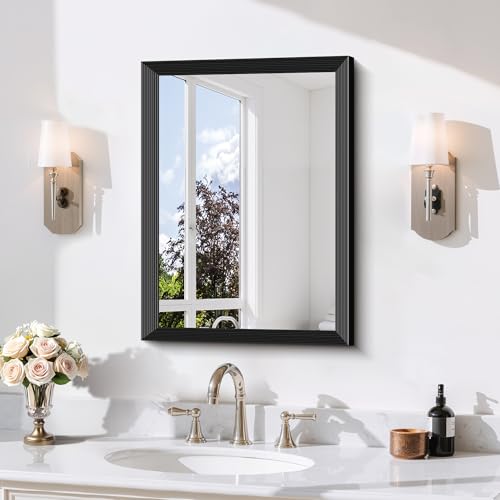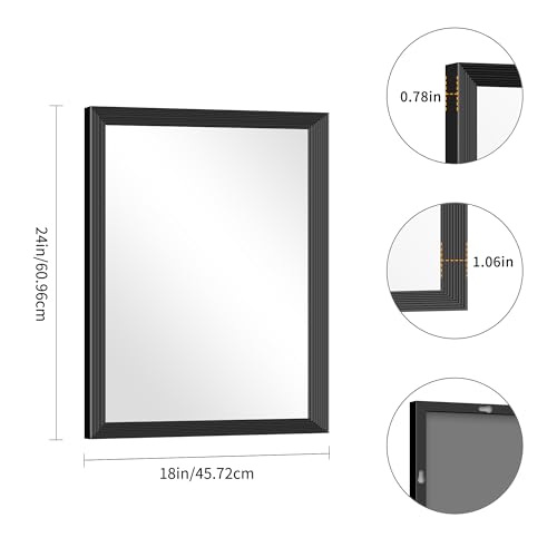 Black Bathroom Mirror 18 x 24 Inch Rectangle Wave Beveled for Wall Bathroom Vanity Mirror for Over Sink, Tempered Glass,for Entryway Hangs, Bathroom Living Room Horizontal or Vertical