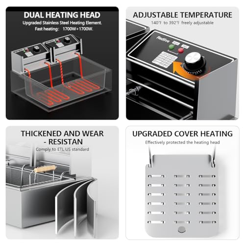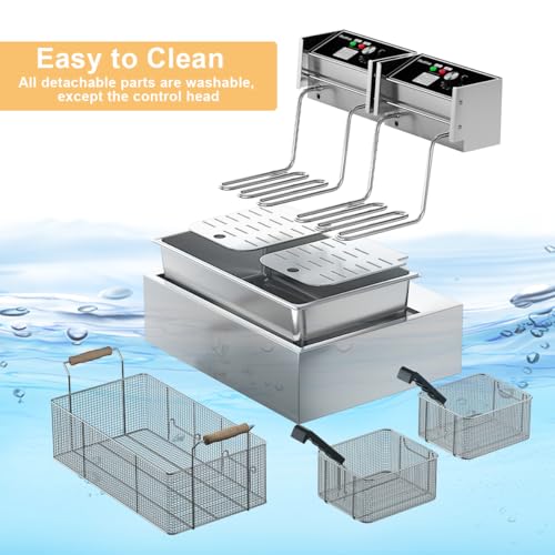 【High Quality – Safe and Durable】The machine is made of high-quality 0.6mm thick stainless steel, and the Oil Tank with a handle is made of 0.8mm thick stainless steel. The upgraded 304 stainless steel heating tubes heat up quickly, enabling perfect frying results. The full-coverage slag isolation board can effectively block food residues from contacting the heating tubes, ensuring the stable operation of the heating tubes and significantly extending their service life. The certified full-copper power cord ensures safe use and long durability;