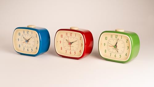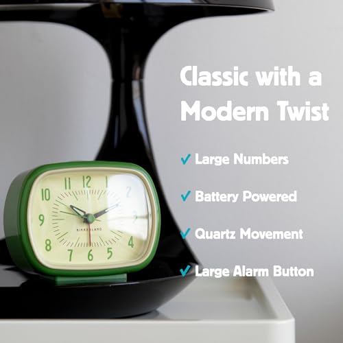 Kikkerland Retro Alarm Clock – Vintage Decor for Bedroom, Nightstand, Living Room, or Office – Battery Operated, Decorative Analog Clock, Green