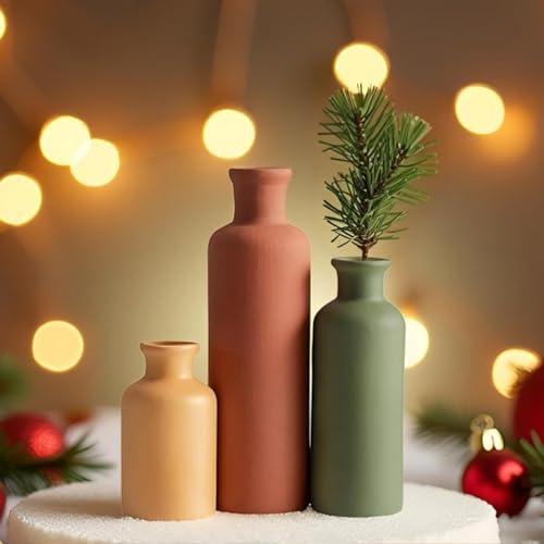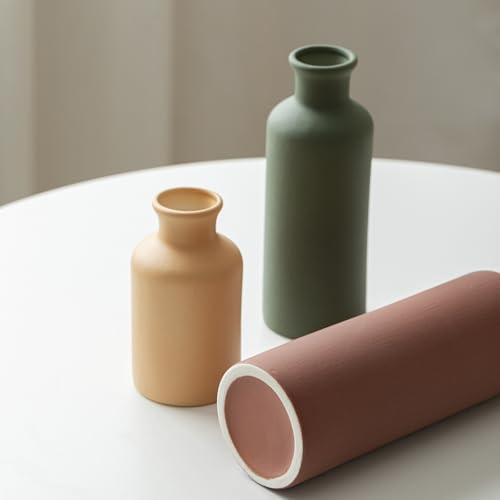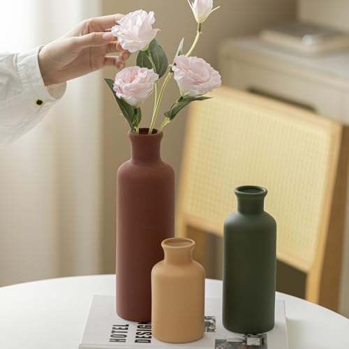 Modern Ceramic Vase Set of 3, Neutral Colors, Decorative Bottles for Home, Farmhouse Rustic Decor, Housewarming Gifts, Wedding Gifts, Bridal Shower Gifts, Birthday Gifts for Women (Green Mix)