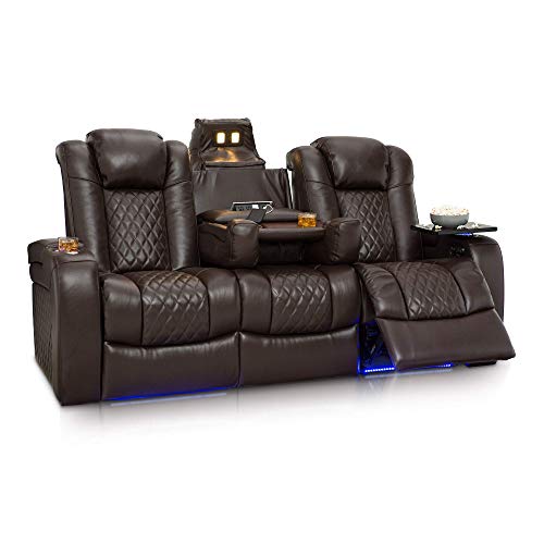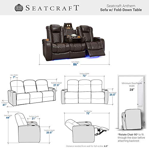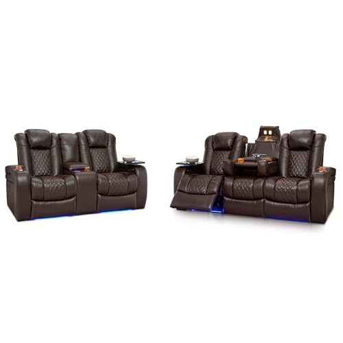Seatcraft Anthem Italian Leather Sofa w/Fold-Down Table & Loveseat w/Storage Console, Living Room, Power Headrest, Power Recline, Brown