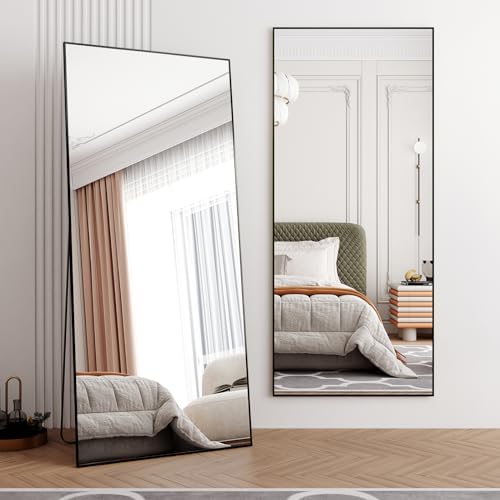 Full Length Mirror with Stand – Large Floor Mirror for Wall-Mounted or Freestanding Use – Aluminum Alloy Frame Dressing Mirror for Home, Adjustable Tilt Design (Black-Rec, 71″ L x 32″ W)